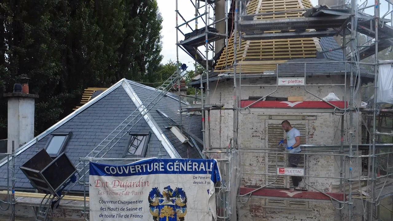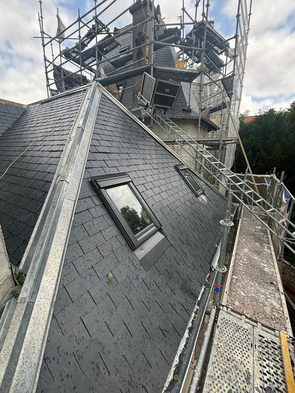 Dujardin Toiture a réalisé la rénovation complète de notre toiture en ardoise, en respectant scrupuleusement les techniques traditionnelles et les normes actuelles.
