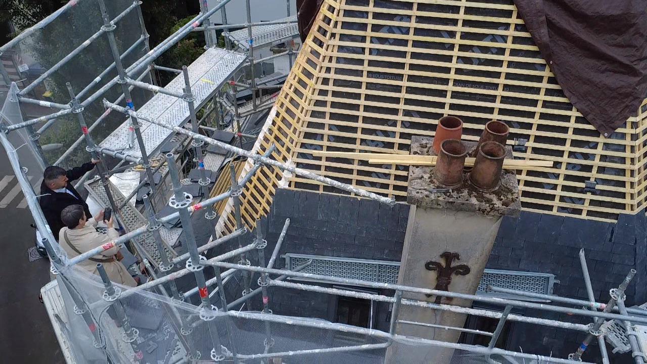 Remplacement des gouttières et descentes pluviales en cuivre, avec des soudures parfaites et un rendu élégant.